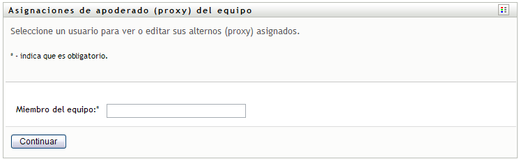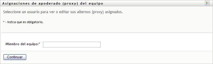 Aparecerán las asignaciones de apoderado (proxy) del miembro del equipo seleccionado, si hay alguna.