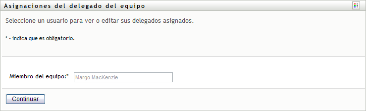 Aparecerán las asignaciones de delegado del miembro del equipo seleccionado, si hay alguna.