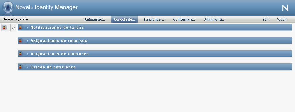 En la sección Perfil de usuario se ocultan los detalles de la entidad seleccionada actualmente para ofrecer más espacio de trabajo para las secciones Notificaciones de tareas, Asignaciones de recursos, Asignaciones de funciones y Estado de peticiones de la página.