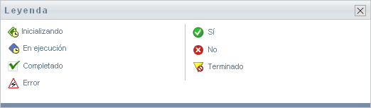 La leyenda ofrece una breve descripción de los iconos utilizados en la pestaña . La siguiente ilustración muestra la leyenda.