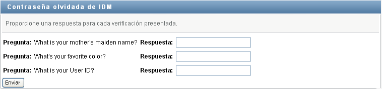 Es posible que en cuanto entre a la aplicación de usuario del Gestor de identidades, el sistema le solicite otro tipo de información. Depende de cómo haya configurado su directiva de contraseña (si existe) el administrador del sistema. Por ejemplo: