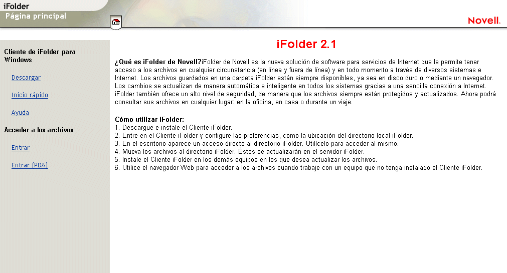 Una vez que iFolder se haya instalado en el servidor, se podrá obtener acceso a los dos sitios Web siguientes: