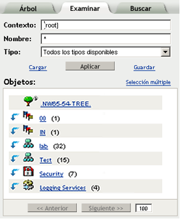 Tipo: define el filtro del tipo de objetos de esta búsqueda. iManager sólo muestra los objetos del tipo especificado.