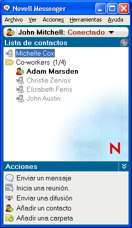 Las opciones de Novell Messenger estarán disponibles sólo en el caso de que la aplicación esté instalada y en ejecución.