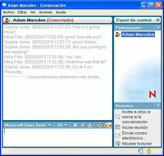 Por defecto, el historial personal muestra los últimos 100 mensajes de una ventana de conversación, salón de charla o difusión.