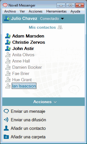Las opciones de Novell Messenger estarán disponibles solo en el caso de que la aplicación esté instalada y en ejecución.