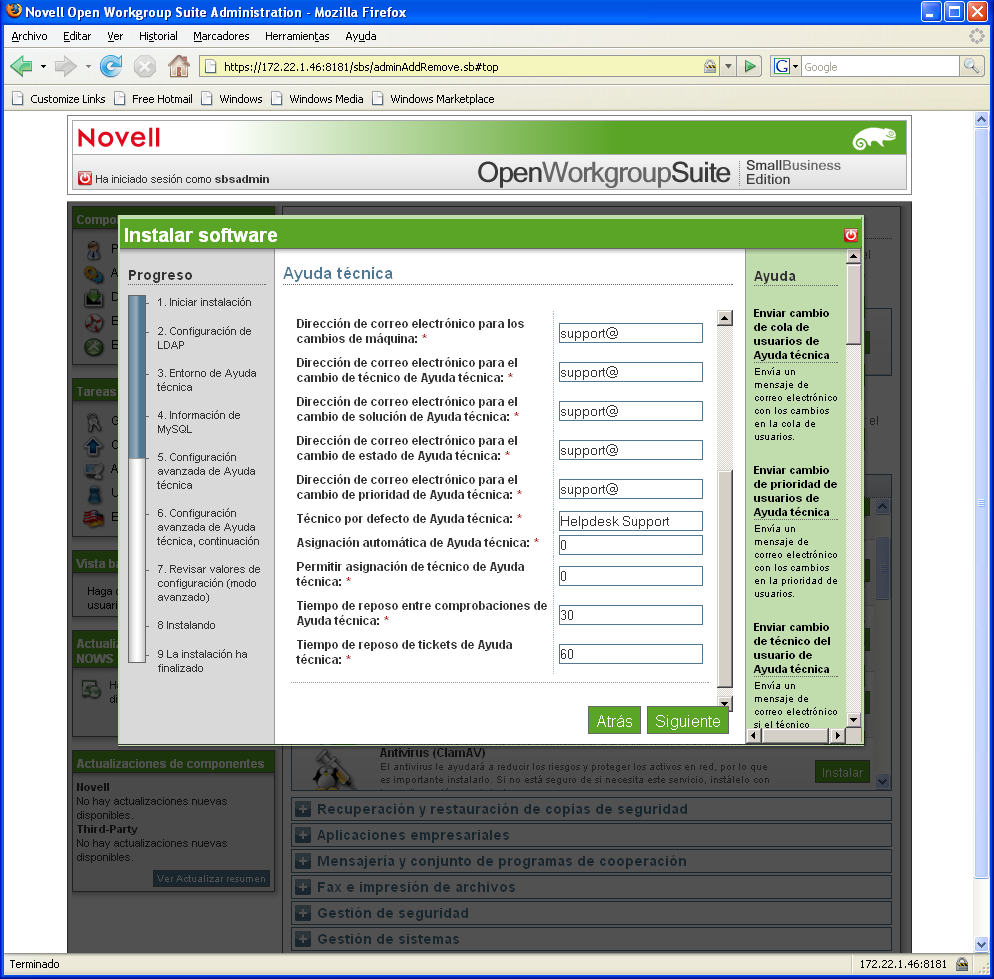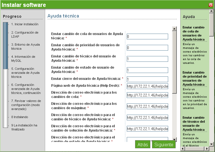 Helpdesk Admin E-Mail (Correo electrónico administrativo de Helpdesk): la dirección de correo electrónico que se utilizará cuando los usuarios envíen incidencias, como por ejemplo soporte@sudominio.com