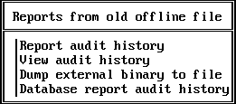 Choose Reports from old offline file from the Available audit options menu (2101).