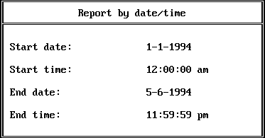 4. When you are finished and have reviewed the date/time range, press Esc to return to menu 1503.