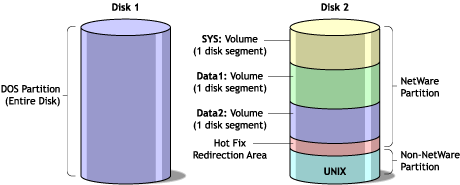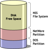 NOTE:  A NetWare disk partition is not related to an NDS® partition.
