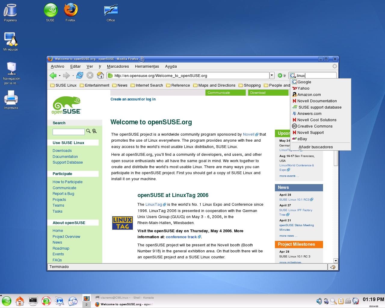 Además de Konqueror, SUSE Linux Enterprise incluye el navegador Web Firefox. Para iniciar Firefox, pulse Alt+F2 e introduzca firefox.