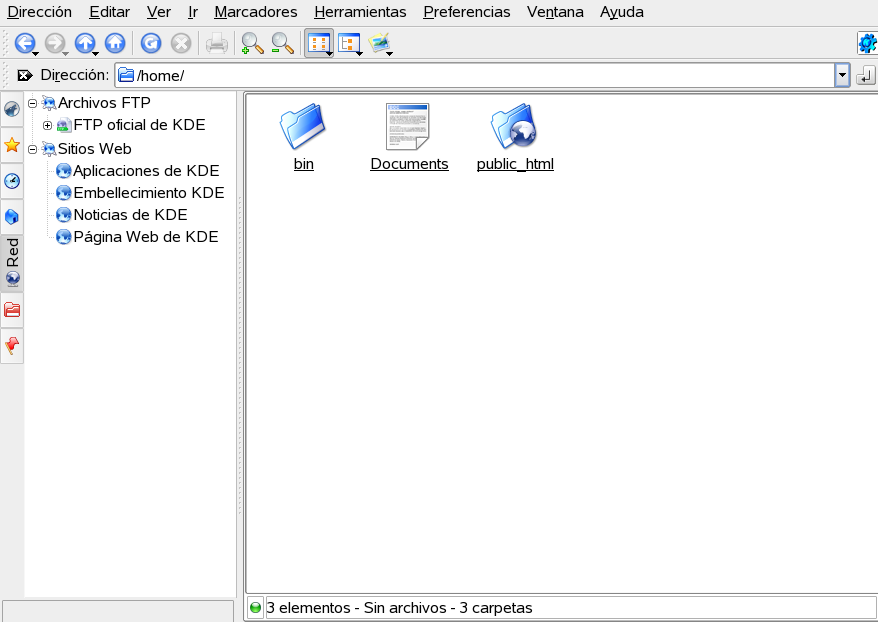 La ventana principal de Konqueror consta de los siguientes elementos: