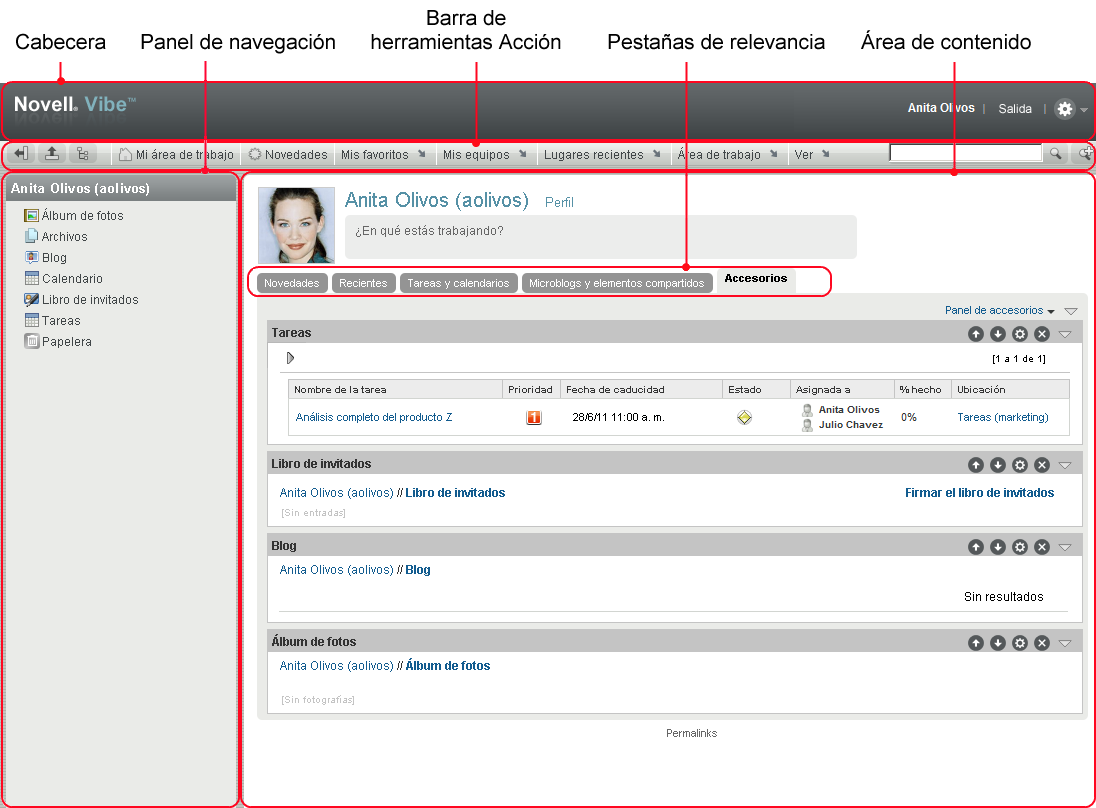 2.0 Introducción a la interfaz de Novell Vibe y sus funciones