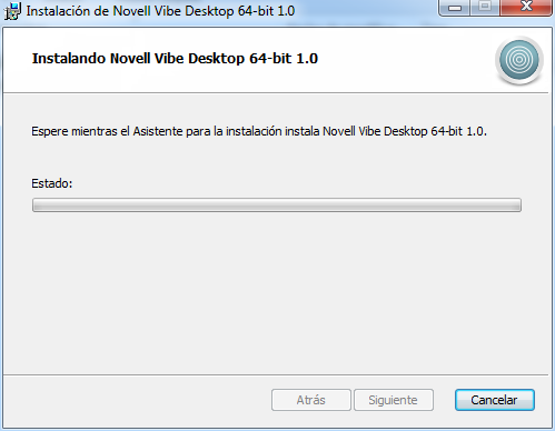 Ejecute el archivo NovellVibeDesktop-x86-versión.msi o el archivo NovellVibeDesktop-x64-versión.msi descargado según si su sistema operativo es de 32 o de 64 bits.