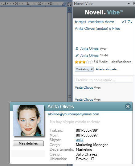 Es posible comentar un documento de Vibe directamente desde Microsoft Office.