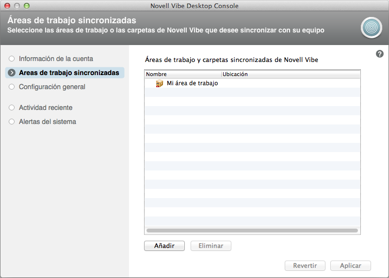 Después de descargar e instalar Vibe Desktop por primera vez como se describe en Descarga e instalación de Vibe Desktop, se le pedirá que configure la aplicación. Este proceso incluye introducir información de la cuenta, seleccionar las áreas de trabajo y las carpetas que se deben sincronizar y seleccionar dónde se va a almacenar la información en el sistema de archivos del equipo.