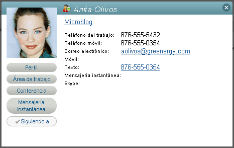 Otra razón para seguir a una persona en Vibe es para estar al día de las entradas de microblog de otro usuario de Vibe. Para obtener información sobre las distintas formas de ver las entradas de microblog de las personas a las que se sigue, consulte la Section 2.10.2, Visualización de las entradas de microblogs de las personas que se siguen.