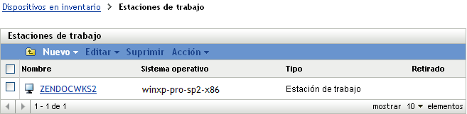 Para buscar sólo estaciones de trabajo retiradas, haga clic en el enlace subrayado situado junto a la carpeta para mostrar la lista de estaciones de trabajo.