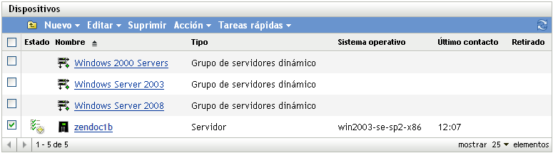 Figura 13-1 Panel Dispositivos en el que se muestra la lista de servidores.