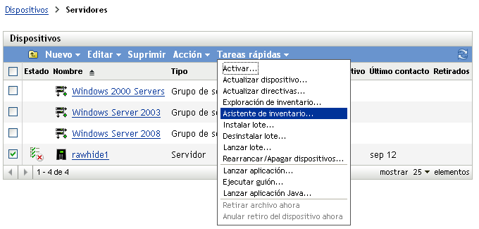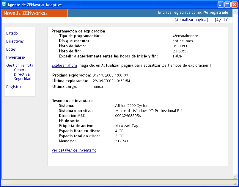 NOTA:esta función sólo está disponible si la opción está seleccionada en la página de configuración de inventario. Para obtener más información, consulte la Sección 2.1, Configuración de una exploración de inventario.