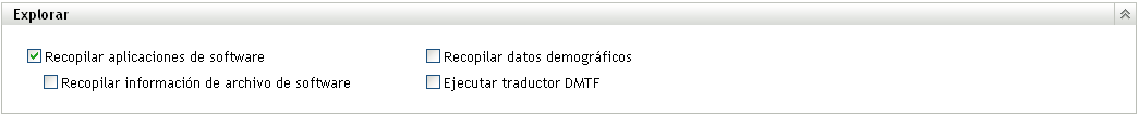 Recopilar aplicaciones de software: seleccione esta opción si desea buscar aplicaciones de software instaladas en el dispositivo. Este valor está seleccionado por defecto.