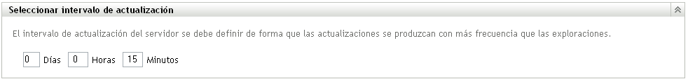 El intervalo de actualización debe definirse de modo que las actualizaciones se produzcan con mayor frecuencia que las exploraciones y con menor frecuencia que las actualizaciones del servidor. El valor por defecto es 12 horas.