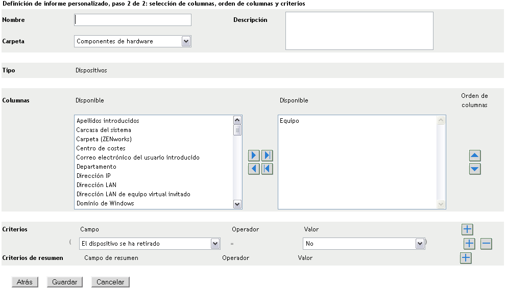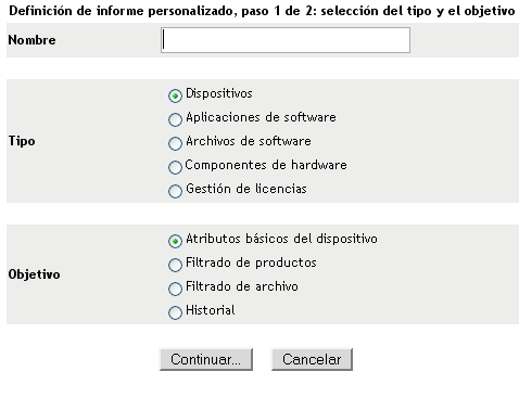 Tipo: este campo es de sólo lectura. Muestra el tipo de informe que se ha seleccionado.