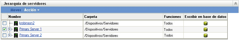 En el panel Jerarquía de servidores, marque la casilla de verificación situada junto al servidor primario que desee.