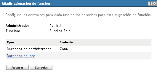 Tipos: incluye una lista con los tipos de derechos del Centro de control de ZENworks configurados para la función.