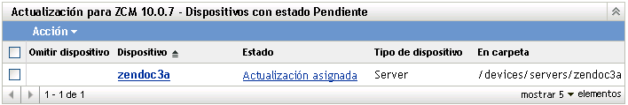 Dispositivos pendientes: muestra sólo los dispositivos en los que la actualización seleccionada está pendiente.