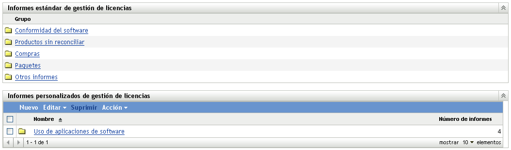 En el panel Informes personalizados de gestión de licencias, haga clic en la carpeta que contiene el informe que desee suprimir.