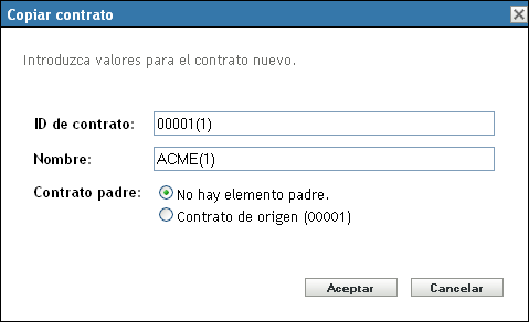 Contrato padre: si desea designar el contrato de origen como padre del nuevo contrato, seleccione Si desea designar el padre del contrato de origen como padre del nuevo contrato, seleccione De lo contrario, seleccione