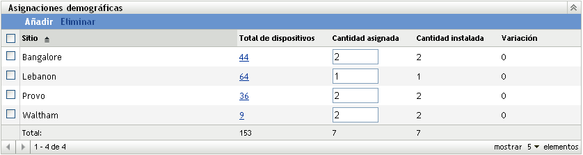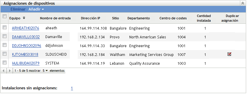 Duplicar asignación: muestra una marca de verificación si la instalación del dispositivo también está incluida en una asignación demográfica.