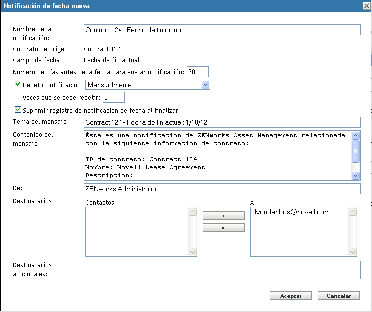 Los contratos incluyen los siguientes campos de fecha en los que se pueden configurar notificaciones: