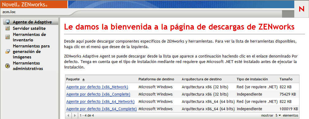 Red: el paquete de red sólo descarga e instala el preagente en el dispositivo de destino; a continuación el preagente descarga e instala ZENworks Adaptive Agent desde el servidor de ZENworks. El paquete de red requiere que el entorno Microsoft .NET esté instalado en el dispositivo antes de que sea posible distribuir el agente.