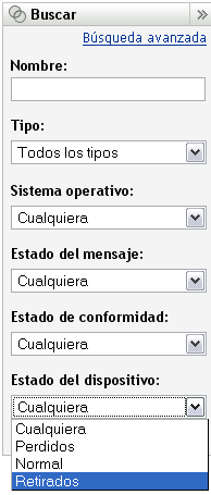 Figura 14-3 Cuadro Buscar con la opción Retirados seleccionada.
