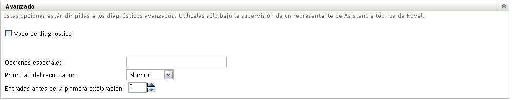 ADVERTENCIA:estas opciones están destinadas al diagnóstico avanzado. Sólo se deben utilizar bajo la supervisión de un representante del servicio de asistencia técnica de Novell.