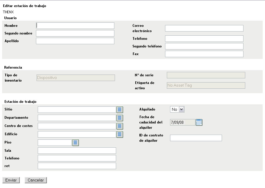 Estación de trabajo: información básica acerca de la estación de trabajo, incluida la sede, el departamento, etc. Haga clic en el icono de la derecha para crear una lista de respuestas. Haga clic en el icono del calendario que aparece junto al campo Fecha de caducidad del alquiler para seleccionar una fecha.