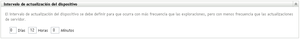 En el panel Intervalo de actualización del dispositivo, defina el intervalo en días, horas y minutos.