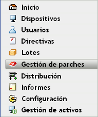 Para ver los parches en Patch Management, haga clic en la pestaña del panel izquierdo, como se muestra en la siguiente ilustración: