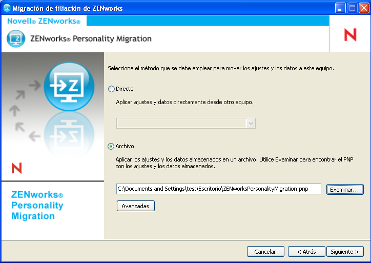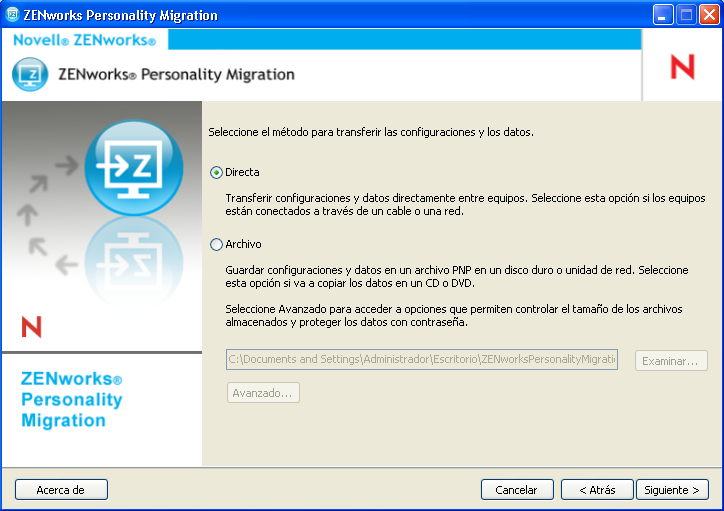 IMPORTANTE:no migre la configuración de red en el modo directo. Para obtener más información, consulte el Sección B.0, Solución de problemas relacionados con Personality Migration. Puede migrar la configuración de red en el modo de archivo.