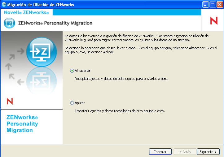 Haga doble clic en el icono de acceso directo de ZENworks Personality Migration en el escritorio.