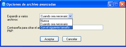 Haga clic en para acceder al recuadro de diálogo Opciones de archivo avanzadas.