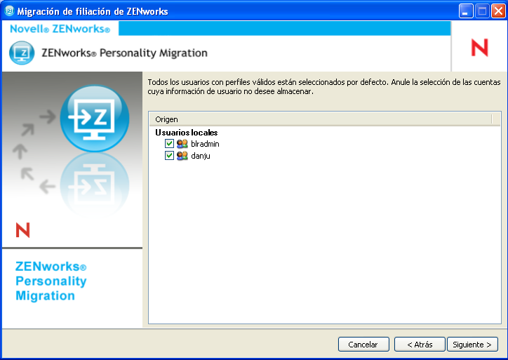 Deseleccione las cuentas de usuario cuyos valores de configuración no desea migrar.