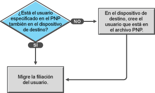 Escenario 9: selección de la opción de plantilla Añadir usuarios a la migración y especificación de un usuario