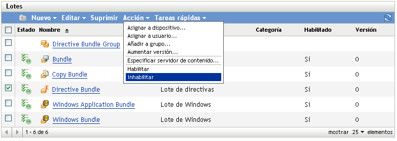 Los lotes inhabilitados no se distribuyen a los nuevos dispositivos gestionados ni a los servidores de contenido. Permanecen en los dispositivos y servidores de contenido en los que ya estén distribuidos.