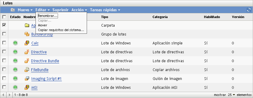 Renombrar: Haga clic en proporcione un nuevo nombre para el lote y, a continuación, haga clic en