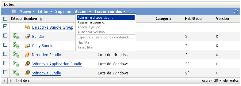 En la lista , marque la casilla de verificación situada junto al grupo (o los grupos) de lotes.