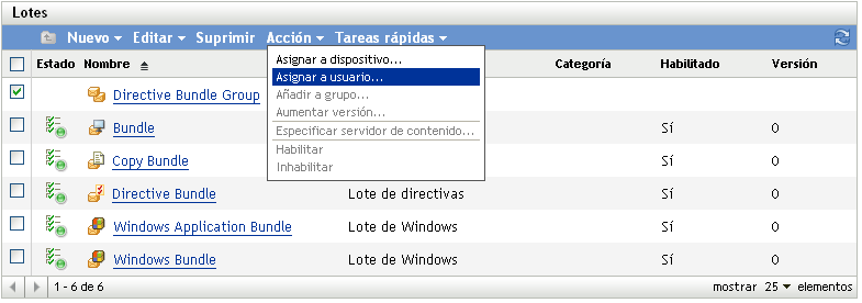 En la lista , marque la casilla de verificación situada junto al grupo (o los grupos) de lotes.