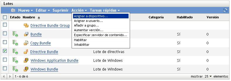 Puede emplear el Centro de control de ZENworks o la utilidad de línea de comando zman para asignar lotes. En el siguiente procedimiento se describe cómo asignar un lote mediante el Centro de control de ZENworks. Si prefiere emplear la utilidad de línea de comandos zman, consulte Comandos de lotes